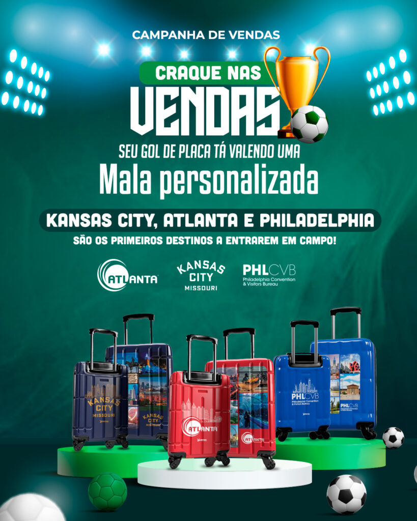 Premiação: O agente artilheiro com maior pontuação leva pra casa uma mala personalizada do destino pra viajar com estilo de campeão!