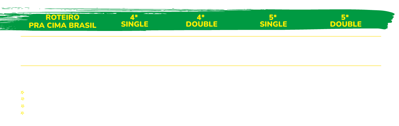 TICKET AÉREO E HOSPITALIDADE NÃO INCLUSOS • TODOS OS PROGRAMAS DE HOSPITALIDADE CONTAM COM ASSENTOS NA CATEGORIA 1